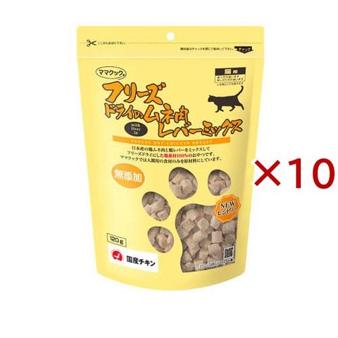 フリーズドライのムネ肉レバーミックス猫用 (120g×10セット)