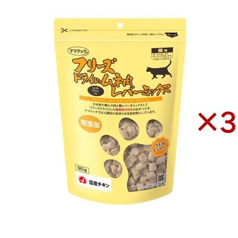 フリーズドライのムネ肉レバーミックス猫用 (120g×3セット)