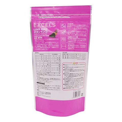 ●ボタンインコの好む素材を中心に配合し、ハチミツ、乳酸菌、オリゴ糖、カルシウムを添加しました。