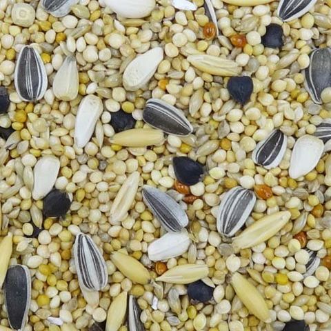 | キビ(皮付き)、ヒエ(皮付き)、アワ(皮付き)、カナリアシード(皮付き)、ヒマワリ、オーツ麦(皮付き)、そばの実、サフラワー、赤キビ(皮付き)、アワ(皮むき)、ボレー粉(カキガラ) ※アワ(皮むき)には、ハチミツ、乳酸菌(フェカリス菌)、オリゴ糖、カルシウムが添加してあります。 |