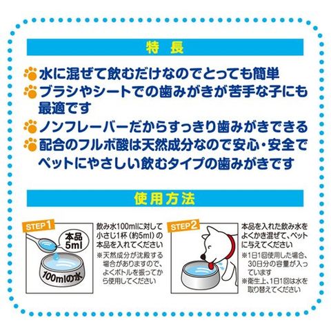 ・本品を入れた飲み水をよくかき混ぜてペットに与えてください。