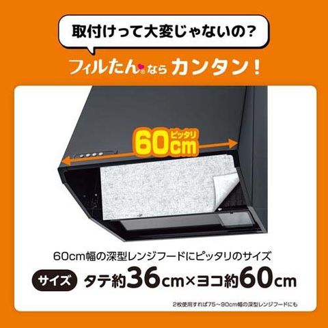 ●60cm幅の深型レンジフードにピッタリのサイズです。2枚使用すれば75~90cm幅の深型レンジフードにも使えます。