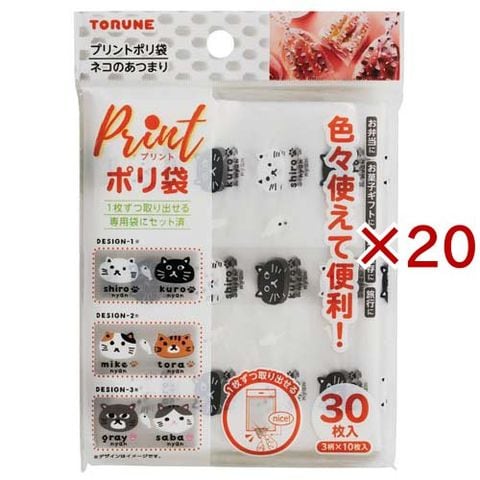 プリントポリ袋 ネコのあつまり P-3593 (30枚入×20セット)