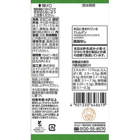 | そら豆(中国又はエジプト(5%未満))、植物油、食塩 / 酸化防止剤(V.C) |