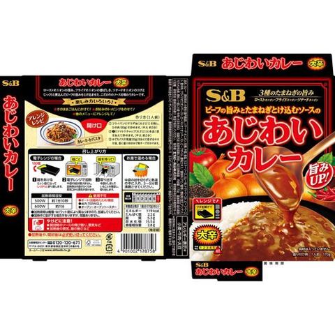| 小麦粉(国内製造)、ソテー・ド・オニオン、砂糖、牛脂、食塩、ウスターソース、カレー粉、トマトペースト、ビーフペースト、香辛料、フライドオニオンペースト、ローストオニオンペースト、ビーフオイル、酵母エキス/調味料(アミノ酸等)、増粘剤(加工デンプン)、カラメル色素、香料、(一部に小麦・牛肉・大豆を含む) |