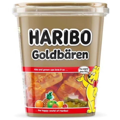 ・ゴールドベアカップ:ハリボーの定番、かわいいクマの形の6種類のフルーツ味のグミをプラスチックのカップに詰めました。