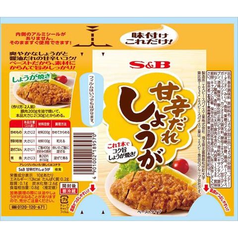しょうが加工品(しょうが(中国))、ソテー・ド・オニオン、みりん、食塩、果糖ぶどう糖液糖、砂糖、醤油、ポークエキス、ガーリックソテー、カツオエキス調味料、酵母エキスパウダー/加工デンプン、酒精、酸味料、酸化防止剤(ビタミンC)、増粘剤(キサンタン)、調味料(アミノ酸等)、香料、(一部に大豆・豚肉を含む)