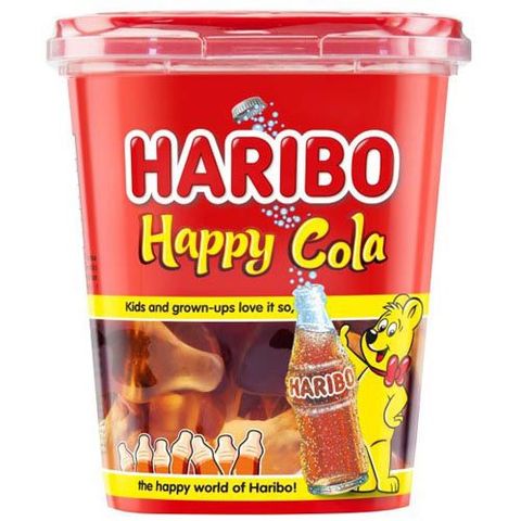 ・ハッピーコーラカップ:さわやかなコーラ味のグミをプラスチックのカップに詰めました。