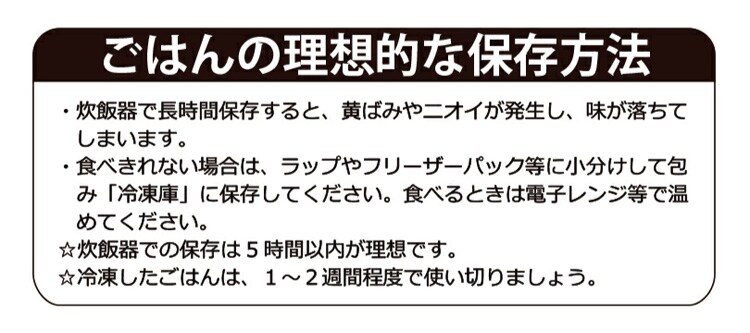 ・長時間の保温は食味の低下やにおい、黄ばみの原因となるのでご注意ください。