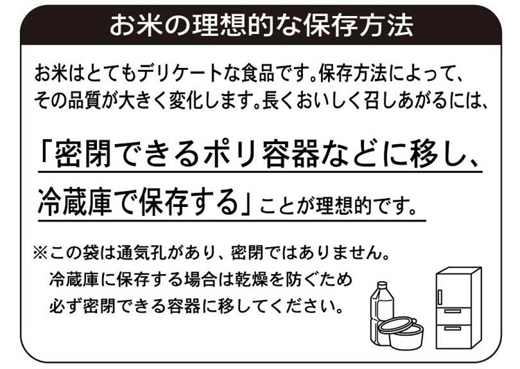 | ・種類:単一原料米 ・産地:茨城 ・品種:あきたこまち ・精米年月日:反対面下部に記載 |