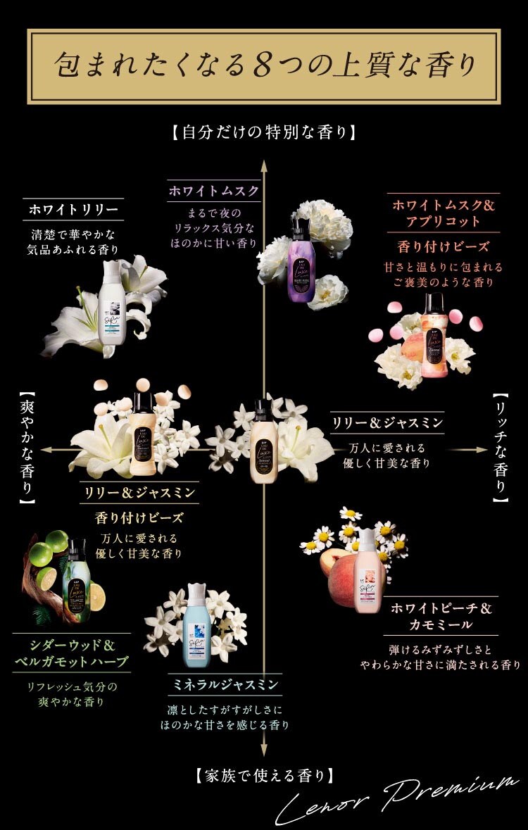 ●お持ちの柔軟剤と合わせるだけでより奥行のある贅沢な香りが楽しめます。