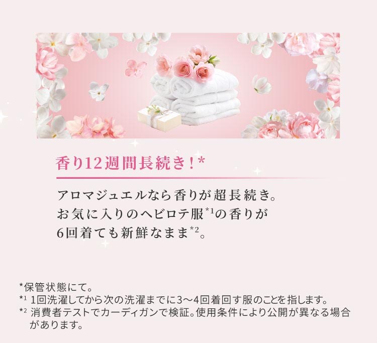 ●柔軟剤と比べて、超吸水※&香り長続きお洗濯のはじめに入れるだけ!