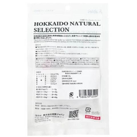 | エネルギー(kcal/100g):435kcal、タンパク質:68.0%以上、脂質:14.0%以上、粗繊維:0.5%以下、灰分:5.0%以下、水分:18.0%以下 |