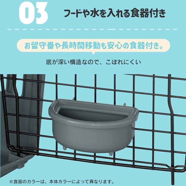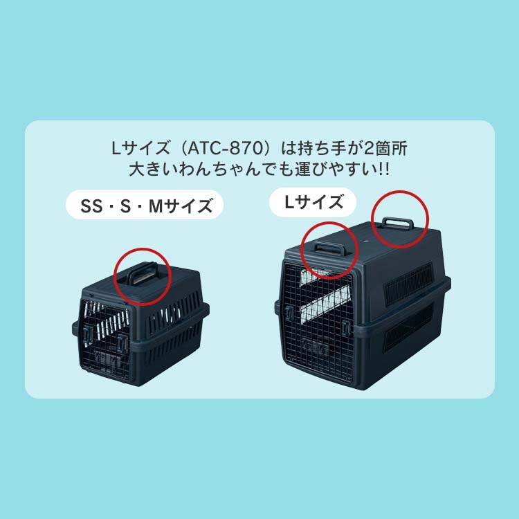 | ・商品サイズ(cm) 幅約62*奥行約87*高さ約65.5 ・商品内寸(cm) 幅約49*奥行約75.5*高さ約63.5 ・入口サイズ(cm) (フェンス取り付け時/フェンス取り外し時) 幅約36*高さ約54.5/幅約41*高さ約54.5 ・重量 ATC-870:約11.4kg ・適合犬サイズ(目安)/耐荷重 ゴールデン・レトリバー、ラブラドール・レトリバー等、35kg未満の大型犬等 ・材質 本体・ハンドル・食器:ポリプロピレン、ノブ・ハンドルカバー:ABS樹脂、扉・軸:スチール(エポキシ粉体塗装) |