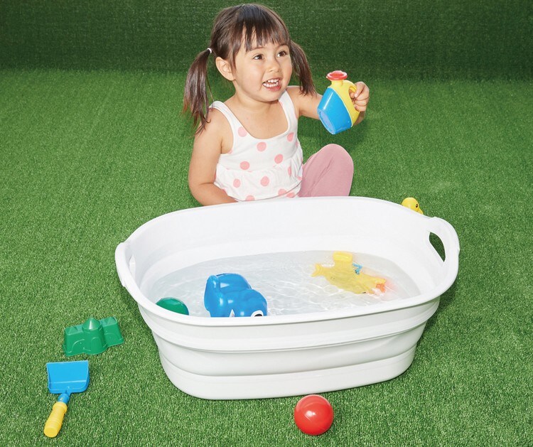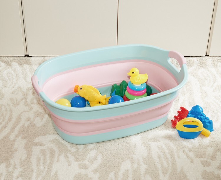 ●やわらか素材のソフトタブワイド。使用後は折りたたんでコンパクトに収納。