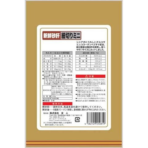 | 鶏砂肝、鶏肉、コラーゲンペプチド、グリセリン、プロピレングリコール、グルコサミン、酸化防止剤(亜硫酸Na、V.C、V.E)、調味料(アミノ酸)、リン酸塩(Na) |