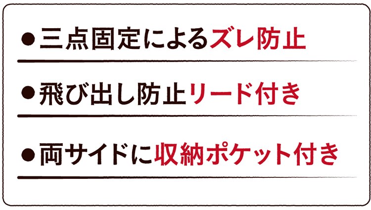 ●飛び出し防止リード付き。