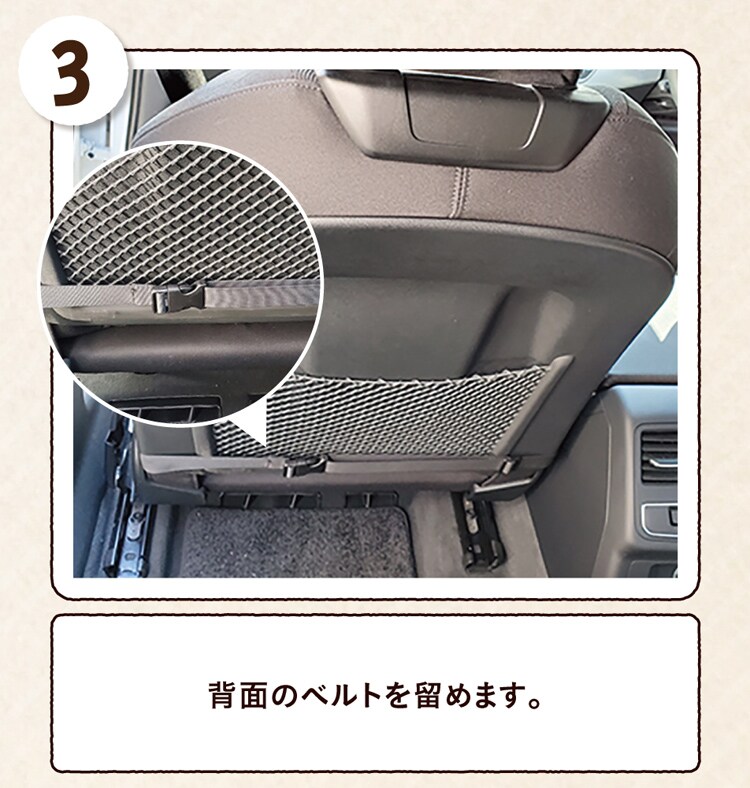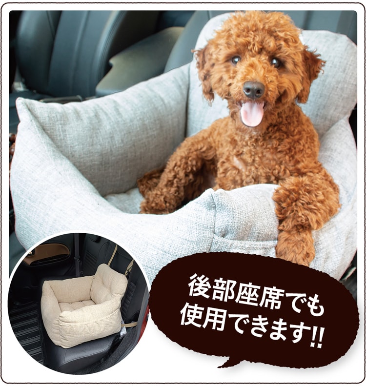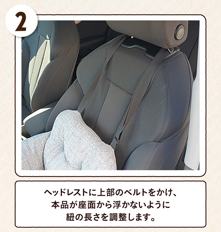 ●おでかけやドライブの際にも、カーシートに固定するベルトが装着されております。カーシートの固定は、助手席、後部座席ともに可能。