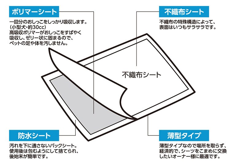 ・不織布面を上にしてペットのトイレの床またはトレーに敷いて下さい。