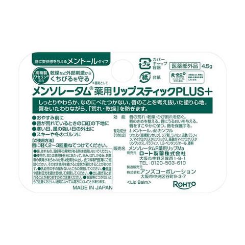 【メンソレータム 薬用リップスティックプラス メントールの商品詳細】