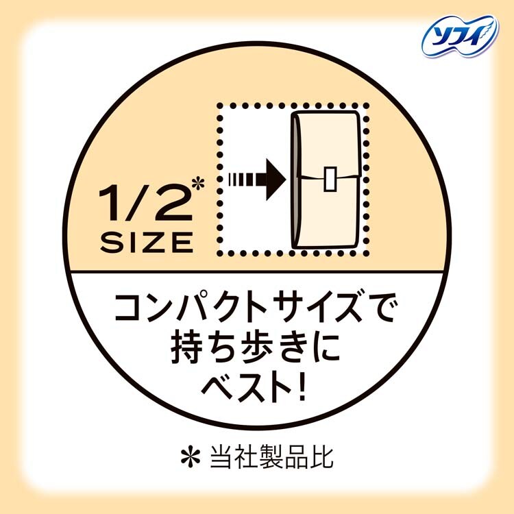 ●普通のスリムナプキンの1/2※のコンパクトサイズだから、持ち歩きにベスト!※メーカー製品比