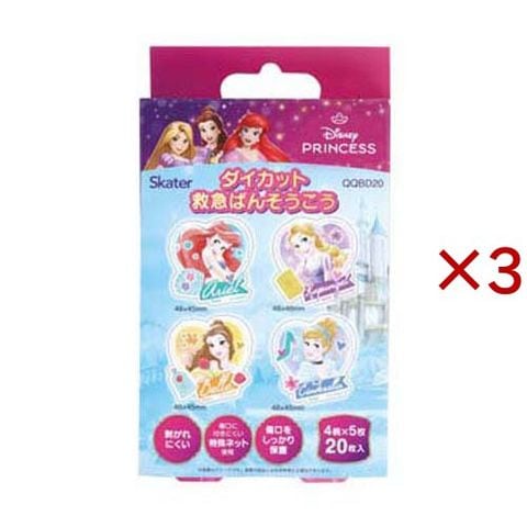 絆創膏 子供 キャラ ダイカット ばんそうこう 20枚入 ディズニープリンセス QQBD20 (20枚入×3セット)