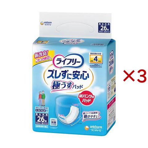 ライフリー ズレずに安心 うす型紙パンツ専用尿とりパッド 4回吸収 (26枚入×3セット)