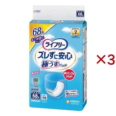 ライフリー ズレずに安心 うす型紙パンツ専用尿とりパッド 2回吸収 (68枚入×3セット)