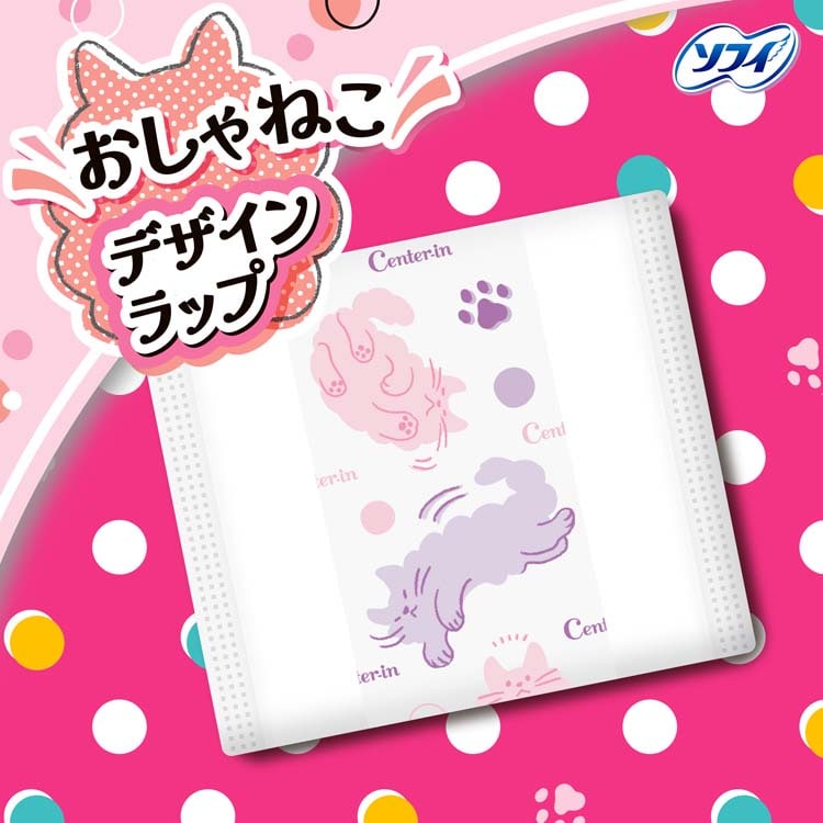 ●つけるとき前後が分かりやすい猫デザインと持ち運びでも可愛いおしゃねこデザインラップを搭載!