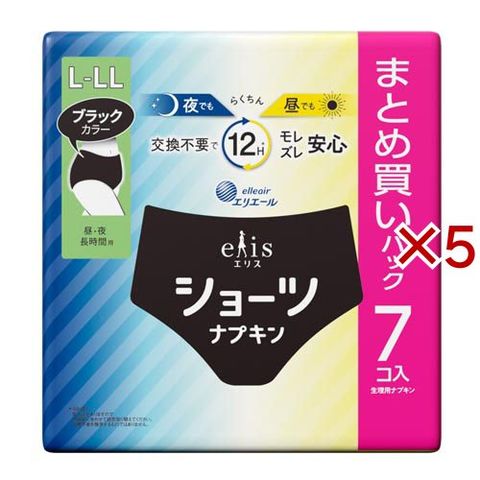 エリスショーツ L~LL 昼・夜 長時間用 ブラックカラー (7枚入×5セット)