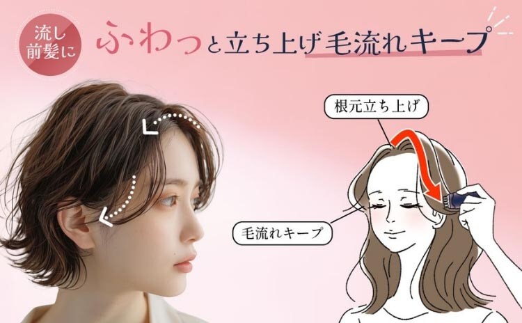 ●前髪にコームをサッと通すだけ 根元立ち上げ・キレイな髪流れ 簡単スタイリング