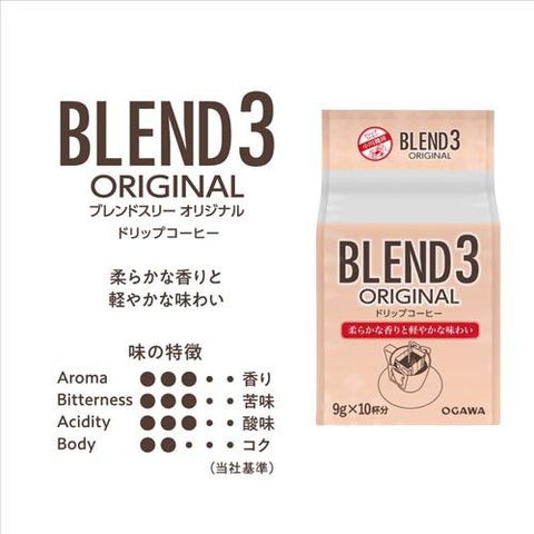 ●ブレンド3オリジナルの味わいが手軽に楽しめるドリップコーヒー商品です。