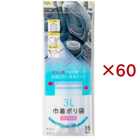 巾着ポリ袋 3L用 白半透明 (15枚入×60セット)