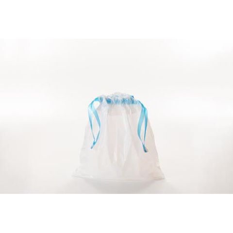 ●ひもがついたポリ袋。巾着タイプで袋が簡単に結べます。