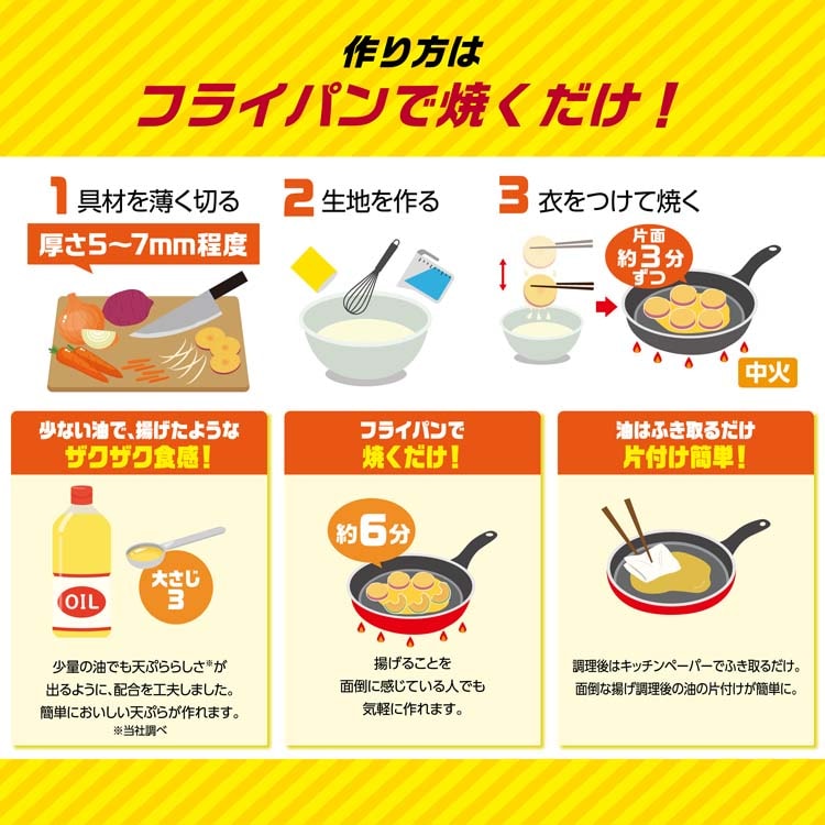 ●お好きな具材を切って、生地をつけて約6分間(目安)焼くだけで、ザクザク食感の天ぷらが食べられます。