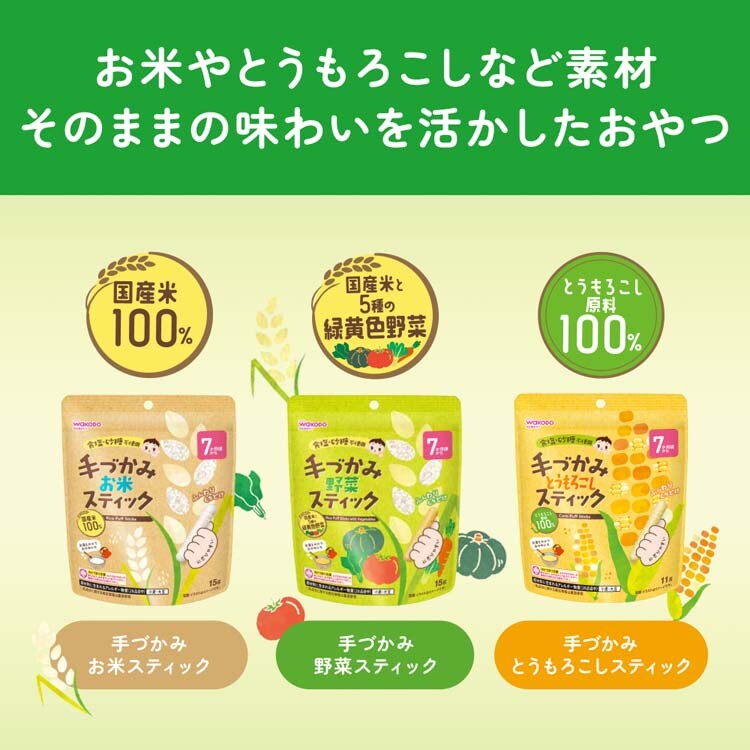 ●ふんわり軽い口どけ・手づかみしやすいスティック状で、はじめてのおやつにぴったりです。