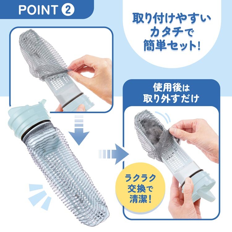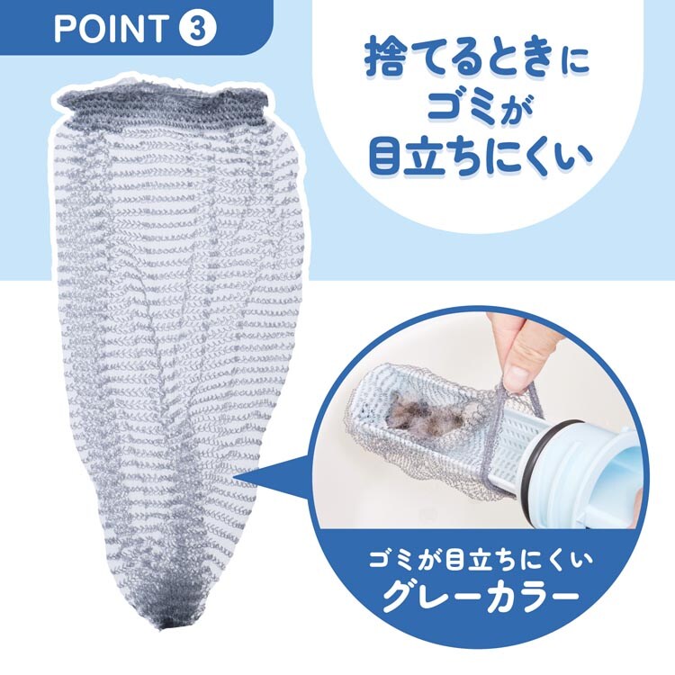 ●目の細かいメッシュ生地のフィルターが、糸クズや髪の毛をキャッチ。