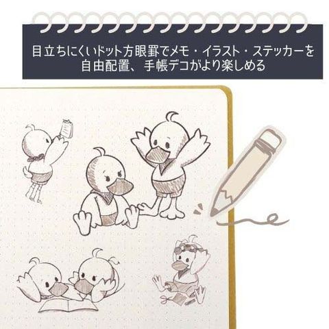 ●目立ちにくいドット方眼罫でメモ・イラスト・ステッカーを自由配置、手帳デコがより楽しめる。