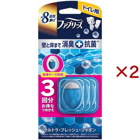 ファブリーズ 消臭芳香剤 トイレ用 ウルトラ・フレッシュ・シャボン 詰め替えパック (3個入×2セット(1個6.3ml))