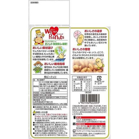 ・ピーナッツは、5歳以下のお子様には食べさせないでください。口の中に入れたままで走ったり、泣いたりすると誤って吸引し窒息する危険があります。