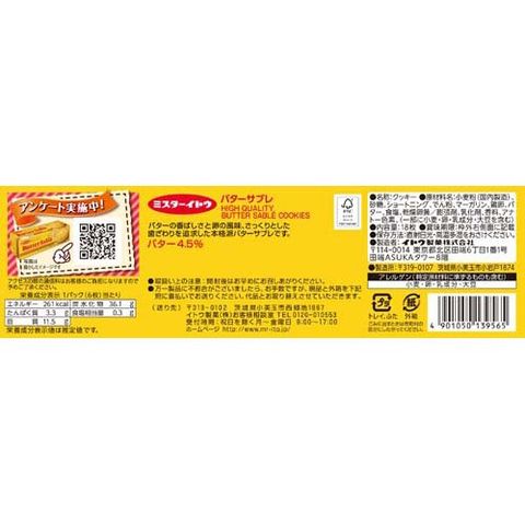 | 小麦粉(国内製造)、砂糖、ショートニング、でん粉、マーガリン、鶏卵、バター、食塩、乾燥卵黄/膨張剤、乳化剤、香料、アナトー色素、(一部に小麦・卵・乳成分・大豆を含む) |