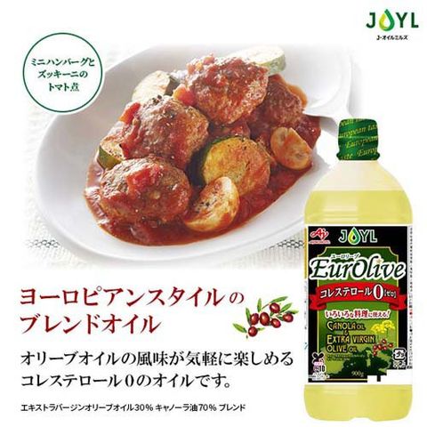 ●ユーロリーブ は、あっさりとしたキャノーラ油に香り豊かなエクストラバージンオリーブオイルをブレンドしたヨーロピアンスタイルのブレンドオイルです。