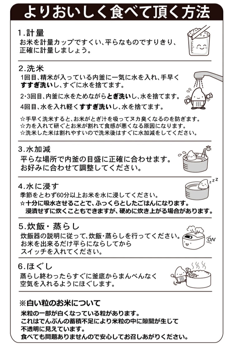 ・とぐときに力を入れすぎるとお米が割れて食感が悪くなる原因になります。