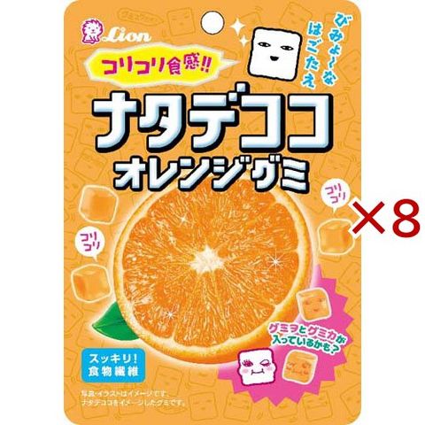 | 水飴(国内製造)、砂糖、食物繊維(ポリデキストロース)、食用油脂、ゼラチン、でんぷん、オレンジ果汁/ソルビトール、ゲル化剤(カラギーナン)、マンニトール、酸味料、光沢剤、香料、乳化剤、パプリカ色素、(一部にゼラチン・オレンジを含む) |