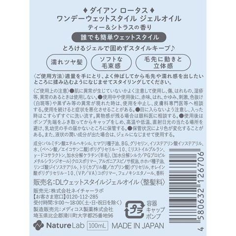 【ダイアン ロータス ワンデーウェットスタイル ジェルオイル ティー&シトラスの香りの商品詳細】