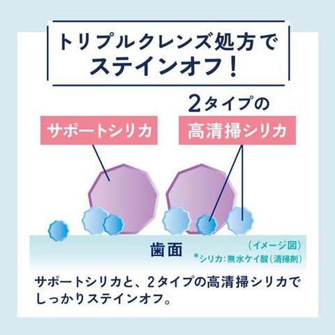 ●サポートシリカと2タイプの高清掃シリカで、しっかりステインを落として、つきにくくし、歯本来の白さを取り戻します。
