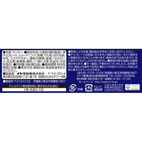 | 小麦粉(国内製造)、準チョコレート、ショートニング、砂糖、でん粉、なたね油、牛乳、ココアパウダー、澱粉分解物、食塩/セルロース、乳化剤、膨張剤、香料、(一部に小麦・乳成分・大豆を含む) |