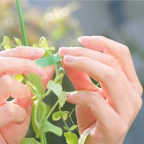 ●野菜や花の苗木を支え棒と一緒に巻いて留めるテープです。