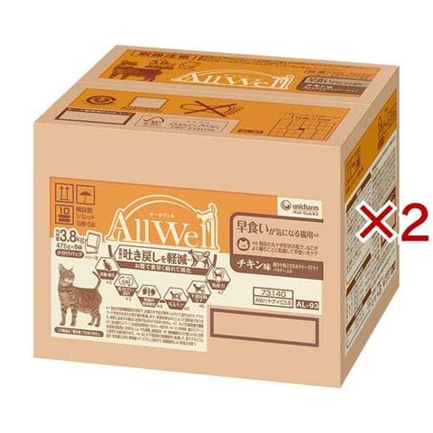 AllWell 早食いが気になる猫用 チキン味 挽き小魚とささみフリーズドライパウダー入り (3.8kg×2セット)