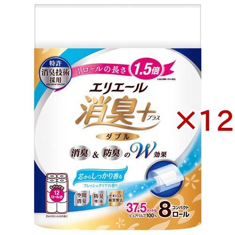 エリエール 消臭+トイレットティシュー フレッシュクリア コンパクト ダブル (8ロール入×12セット)